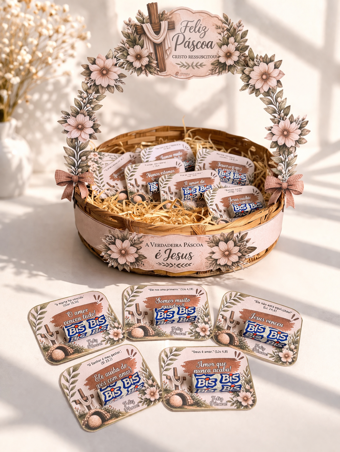 🌿✝️ Kit Decorativo para Cesta de Páscoa – A Verdadeira Páscoa é Jesus